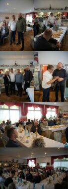 Nun übergab Herr Peters symbolisch den Staffelstab an Herrn Michael Baresel weiter. Er wünscht ihm ein gutes Händchen, volle Auftragsbücher und stets zufriedene Kunden. Im Ruhestand wird Herr Peters sich jedoch nicht ausruhen: Er hat sich eine moderne Imkerei aufgebaut und produziert nun jährlich etwa 2 Tonnen Honig. So durfte sich jeder Gast zum Abschied ein Glas selbst geimkerten Honig mitnehmen.