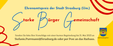 In Strasburg (Um.) engagieren sich viele Menschen ehrenamtlich. Ihnen allen gehört unser Dank! Im Rahmen des Strasburger Stadtfestes am 9. September 2023 ist es geplant, den Ehrenamtspreis der Stadt Strasburg (Um.) „Starke Bürger Gemeinschaft“ zu verleihen.