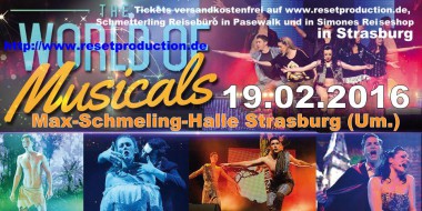 „Alle Hits in einer Show“ – das ist das Motto dieser zweieinhalbstündigen Gala voller Glanzpunkte. Die emotionale und abwechslungsreiche Reise in die große Welt der Musicals wird die Zuschauer begeistern. Wunderschöne und emotionale Balladen aus „Evita“ oder „Elisabeth“ wechseln sich ab mit fetzigen Hits aus „Dirty Dancing“, „We Will Rock You“ oder „Mamma Mia“. Aktuelle Musicals wie „Rocky“ oder „Sister Act“ werden ebenso faszinieren wie die Klassiker aus „Cats“ oder dem „Phantom der Oper“. Und natürlich dürfen „die beiden Udos“ nicht fehlen: Ausschnitte aus „Hinterm Horizont“ und „Ich war noch niemals in New York“ sind auf vielfachen Wunsch der Besucher fester Bestandteil dieser hochkarätigen Gala. „The World Of Musicals“ ist der perfekte Mix aus unvergesslichen Musicals.